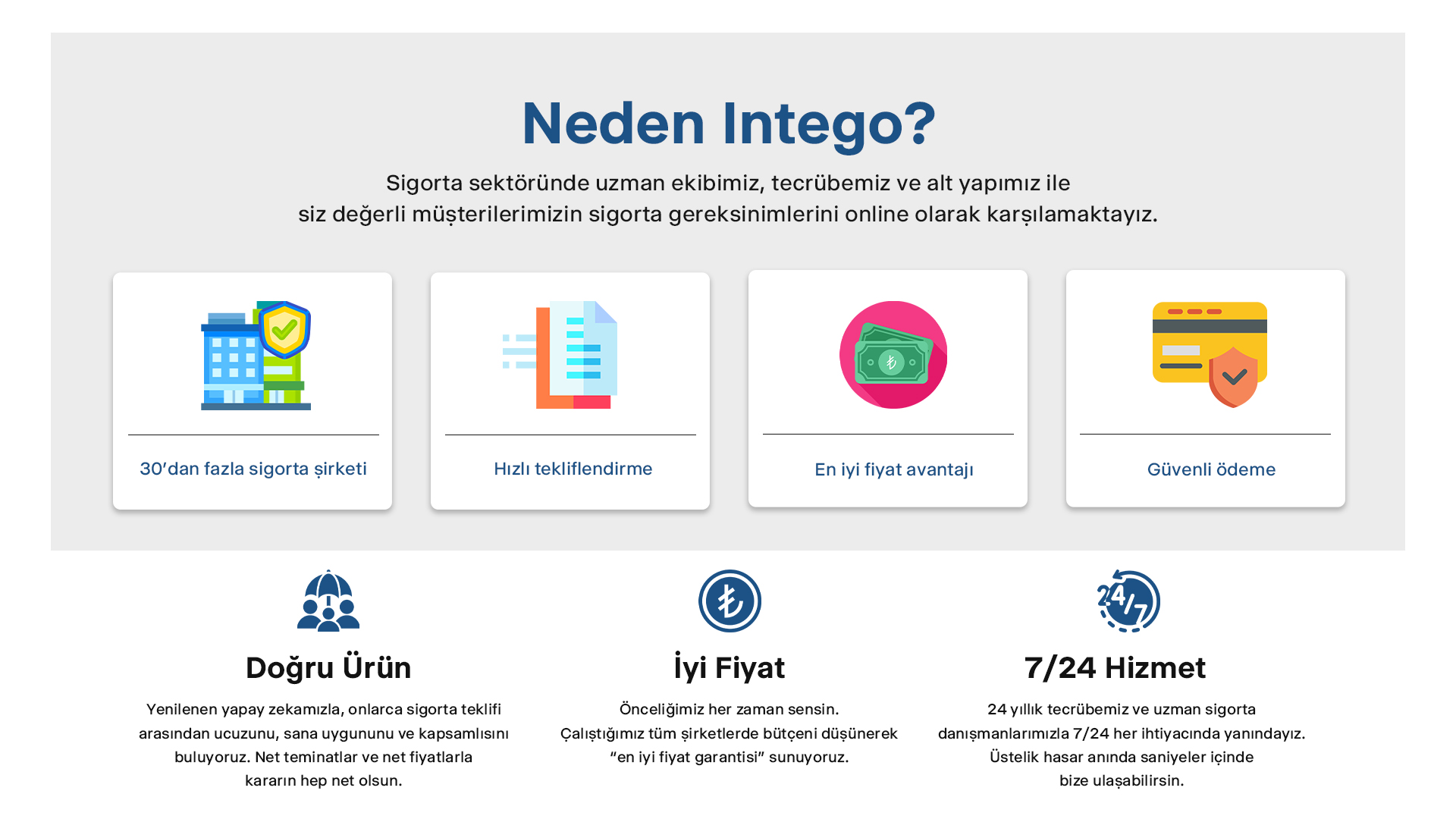 Her araç sahibi tarafından yaptırılması zorunlu olan ve hasar anında karşı tarafa verilebilecek bedeni ve maddi zararları güvence altına alan bir sigortadır. Siz de Intego Sigorta güvencesiyle Zorunlu Trafik Sigortanızı yaptırın, trafiğe güvenle çıkın.